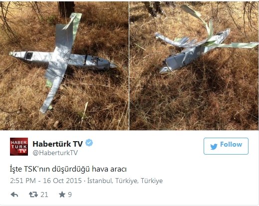 Сбитый турецкими ВВС беспилотник ФОТО: Twitter