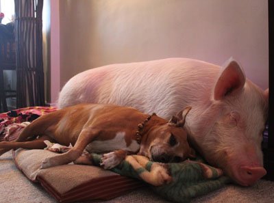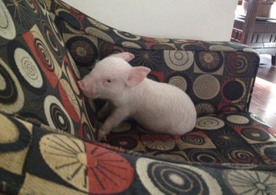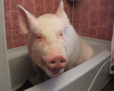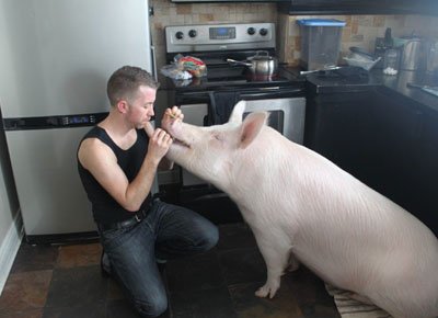 Хозяева свиньи, канадцы Дерек и Стив, приобрели это милое животное крошечным поросенком в 2012 году.