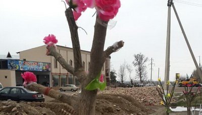 Напомним, в марте этого года перед поездкой узбекского президента Ислама Каримова в Наманган местные власти заставили людей приклеить к деревьям искусственные цветы.