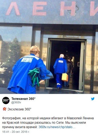 "Ленин жив. А я знал, главное — вовремя похмелиться", — пошутил @mikhailjackson7. "Ленин вчера вызывал скорую…" — заметил @Telemaster68. "Там это, Ленин умирает. Или нового заносят", — предположил @viselnikodina.