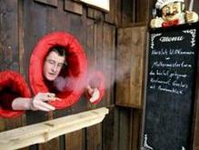 Майкл Виндиш, владелец бара и ресторана Maltermeister Turm в Госларе (Нижняя Саксония), после введения запрета на курение во всех общественных заведениях проделал в стене возле столиков по три дырки – по одной для головы и по две для рук, сообщает Корреспондент.