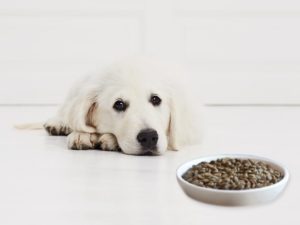 Собака, сидя на диете, пыталась поесть в отсутствии хозяев, но что-то пошло не так.