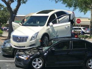 Пенсионер «припарковал» Cadillac на крышах двух машин
