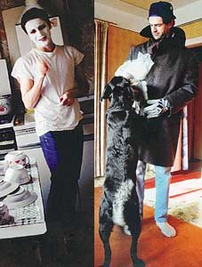 На съемках у Руперта Эверетта были свои привязанности. Слева — любовник актера, с которым он отправился на съемки в Россию (на лице у него косметическая маска); на фото справа — черный лабрадор, c которым Эверетт не расставался в станице Вешенской. Фото 1991 года.