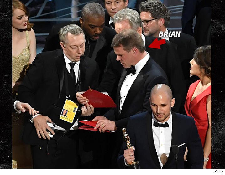 Американский таблоид TMZ нашел человека, перепутавшего конверты при объявлении картины в категории "Лучший фильм" на церемонии вручения премии "Оскар-2017". Виновником неразберихи оказался Брайан Каллинэн (на фото): именно он должен был убрать карточку с именем Эммы Стоун, снявшейся в фильме "Ла-Ла Ленд", и передать Уоррену Битти карточку с названием картины "Лунный свет".