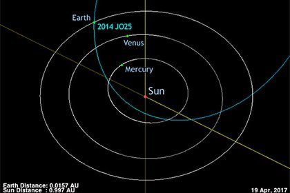 В ночь на 20 апреля 2017 года мимо Земли на близком расстоянии пролетит гигантский астероид, сообщается на официальном портале NASA. По словам ученых, небесное тело 2014 JO25, которое в честь актера Дуэйна «Скалы» прозвали "Скалой", подойдет на максимально близкое расстояние к Земле за последние 400 лет.