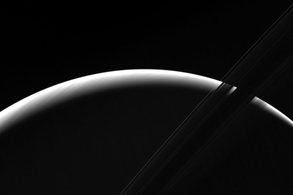 В объектив камеры попал контур погруженной во мглу планеты, с опоясывающими ее ледяными кольцами на переднем плане, и огромную полусферу закатного Солнца. Проанализировав снимок, ученые сделали вывод о том, что на Сатурне происходит резкая смена времен года.