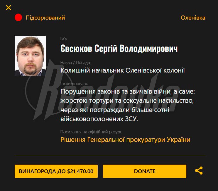 Евсюков известен тем, что был главой Еленовской колонии для военнопленных в ДНР. На Украине против него и его заместителя возбуждено уголовное дела по факту обстрела колонии летом 2022 года.