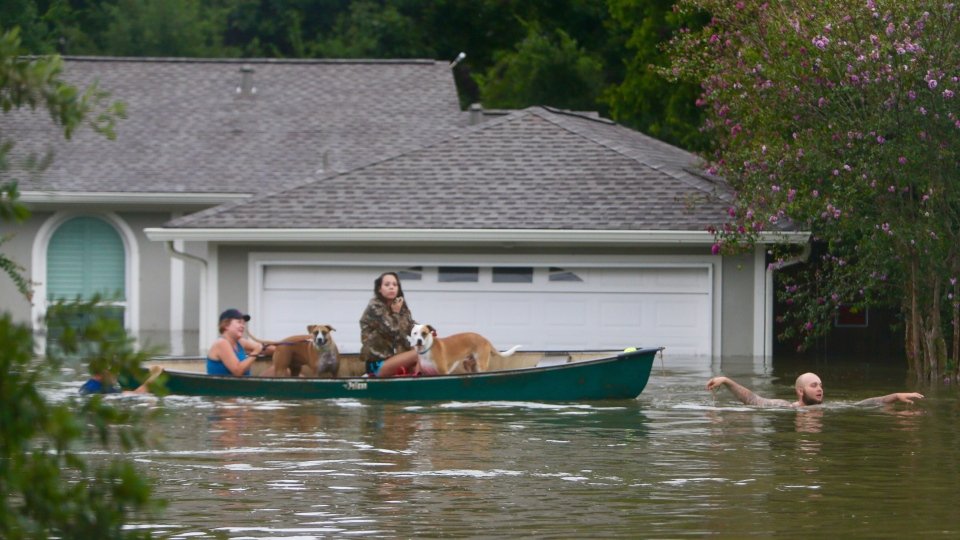 В Хьюстоне не работают два международных аэропорта, взлетные полосы оказались под водой. В городе практически нет электричества. Символом урагана Харви в Интернете стал снимок пса по кличке Отис, покидающего дом с сумкой собачьего корма.