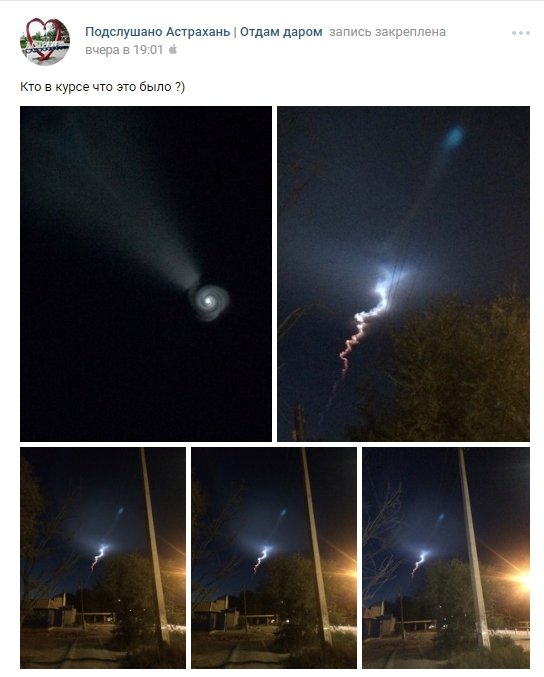 "Ребят, я, конечно, в шоке. Похоже, я поверила в существование НЛО. Это нужно было видеть своими глазами. В начале появился свет в виде спирали, и она резко начала крутиться. Все это увеличилось в десятки раз, и весь свет затем рассеялся словно туман. 100 процентов — это никакие не самолеты, вертолеты и тому подобное", — отметила Зарина из Камышина.