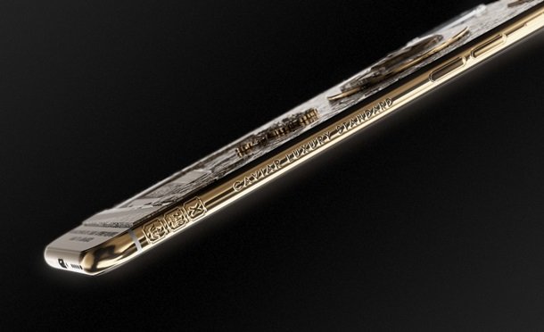 Как сообщает компания Caviar, специализирующаяся на люксовой отделке смартфонов, на золотом корпусе устройства выгравирован барельеф Владимира Путина, герб России и слова "Мы настроены на самое лучшее будущее и мы его добьемся".