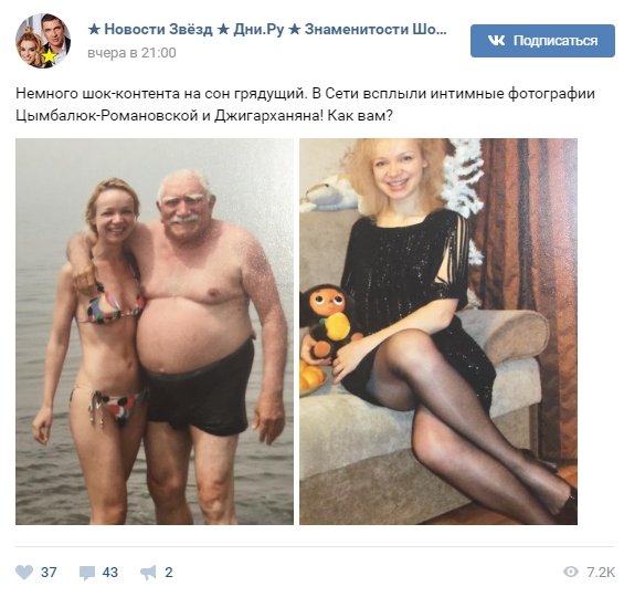 «Позорище! Что старый, что молодуха», «Надо бы кошмарнее, да некуда», «Морж и головастик», «Огосподииииии!!!!» — пишут комментаторы под публикацией «ВКонтакте».