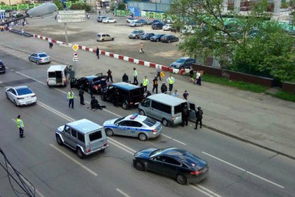 Меж тем распоряжении телеграм канала-MASH оказались фото с места задержание, его автомобиль и машины сопровождения блокировали сотрудники Росгвардии прямо на дороге.