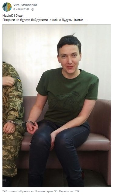 Вера Савченко также опубликовала на своей странице в Facebook фото похудевшей сестры.