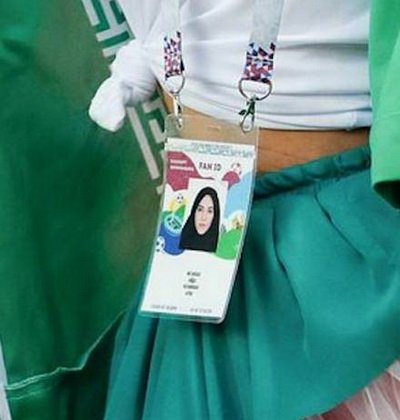 О том, что девушка именно из Ирана, указывает паспорт болельщика, который висит на шее фанатки, где она запечатлена в хиджабе.