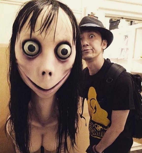 В рамках вирусной игры подросткам на телефон приходят сообщения от когтакта с таким имене и жуткой аватаркой. Он рассылает жуткие картинки и видеокадры, а также сообщения с заданиями. В случае невыполнения Момо угрожает участникам игры смертью.