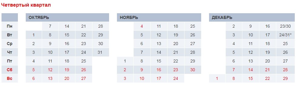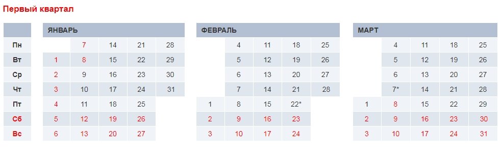 Продолжительность выходных и праздничных дней в России в 2018 году.