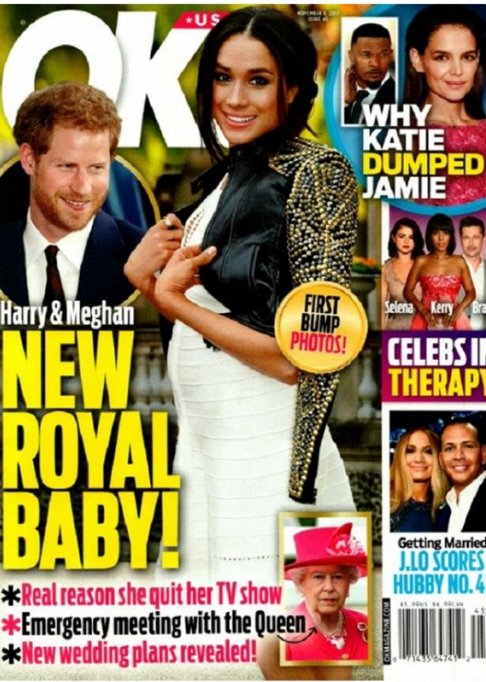 Таблоид National Enquirer со ссылкой на анонимного источника при дворе утверждает, что Маркл беременна "королевской двойней" — мальчиком и девочкой.