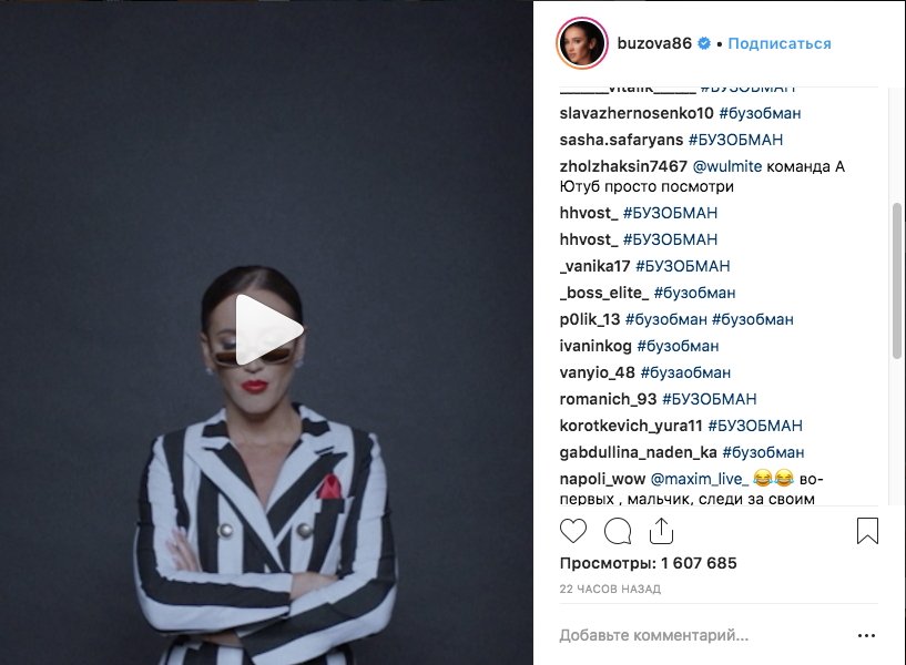 По информации СМИ обманутыми оказались 150 блогеров, которые внесли от 50 до 100 тысяч рублей. Разозленные обманом они решили атаковать Instagram телеведущей, оставив под фотографиями Бузовой комментарии с хештегом #Бузобман. В начале телеведущая закрыла комментарии к одному из снимков, а теперь закрыла и сам аккаунт — он доступен лишь для подписчиков.