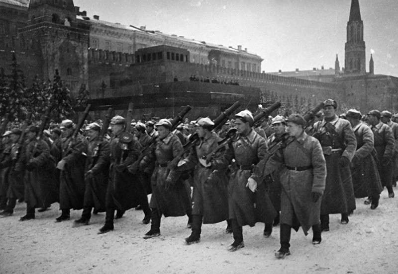Парад 7 ноября 1941 года в ознаменование 24-й годовщины Октябрьской революции состоялся на Красной площади в условиях, когда Красная Армия вела тяжелые оборонительные бои с немецко-фашистскими войсками, находившимися в 70-100 км от столицы. Готовился парад в обстановке строгой секретности, и сам факт парада был полной неожиданностью для германского командования.