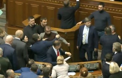 Отметим, что принятие важного для Порошенко документа не обошлось без драки. В тот момент, когда спикер Верховной Рады Андрей Парубий ставил на голосование закон об утверждении указа о введении военного положения, возле трибуны произошла потасовка. Депутат от БПП Сергей Березенко толкнул другого нардеп, тот не удержался на ногах и врезался в суфлер, с которого зачитывал свою речь Порошенко.