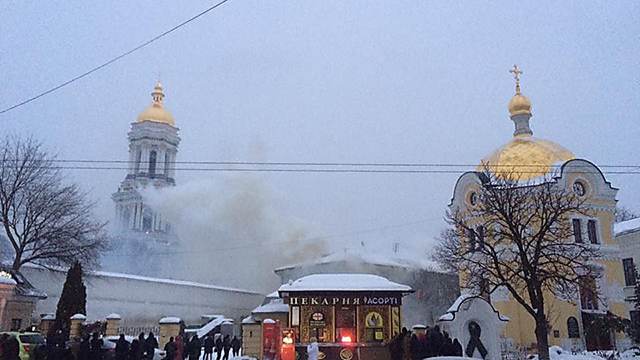 В Киево-Печерской лавре начался пожар. В распоряжении телеканала «360» появилось видео пожара. На кадрах записи видео, как плотные дым буквально обволок здание Киево-Пеерской лавры.