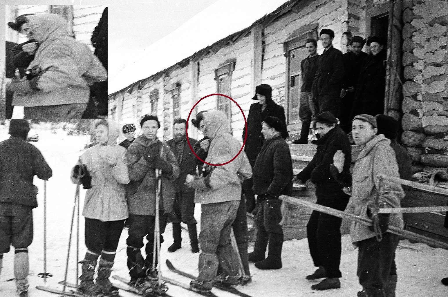 Энтузиаст обратил внимание на записи дневника группы, в котором рассказывалось, как перед восхождением на гору Холатчахль студенты побывали в поселке, где жили вольнонаемные и бывшие заключенные, работавшие на лесозаготовках. По слова Дегтерева, он отметил, что рядом со старавшимся не попадать в объектив фотокамеры членом группы Семеном Золотаревым можно увидеть усатого местного жителя, общавшегося с туристом.