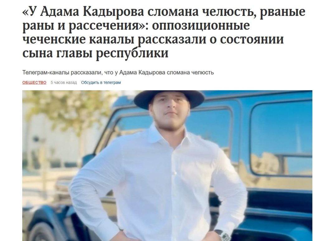 В СМИ продолжают тиражировать информацию о ДТП, в котором якобы разбился сын Рамзана Кадырова Адам. По данным оппозиционных чеченских каналов, вечером 16 января Адам Кадыров попал в ДТП в Грозном.