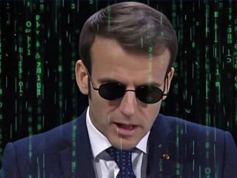 При первом появлении утверждалось, что у политика лопнул сосуд в глазу. Однако пользователи превратили образ политика почти в мем, публикуя шутливые фото Макрона в очках.