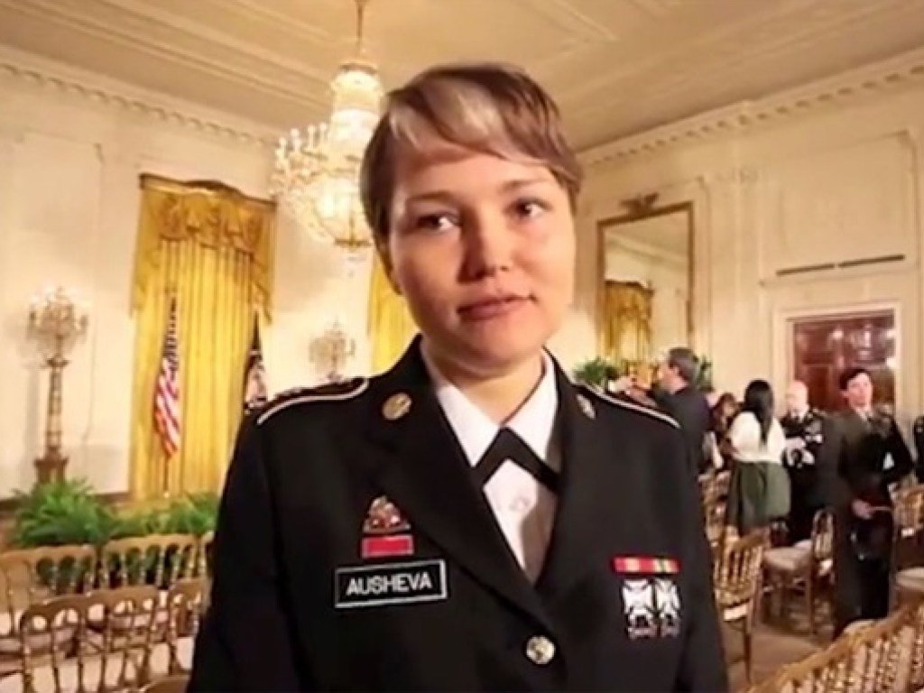 Алла Аушева приехала в США в 2011 году, выиграв грин-карту в лотерею. Через три месяца она пришла на службу в Нацгвардию Нью-Йорка. В 2012 году она получила американское гражданство, а в 2014 году была переведена в ВВС Нацгвардии.