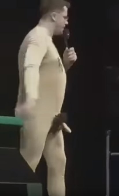 На видео, снятом из зала на камеру смартфона, запечатлено, как Гарик Харламов в костюме голого человека со всеми "торчащими подробностями" сокрушается из-за тотального невезения в казино, оставившего его без штанов.