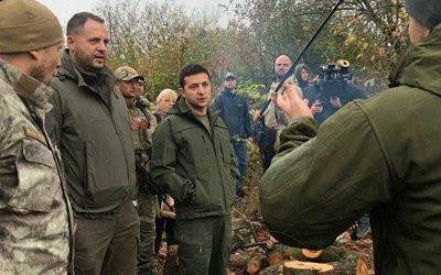 В ходе "фронтового" чаепития один из добровольцев по имени Денис спросил Зеленского, планирует ли он встречаться с участниками акции «Нет капитуляции», которые выступают против «формулы Штайнмаера", на что украинский лидер ответил довольно грубо.