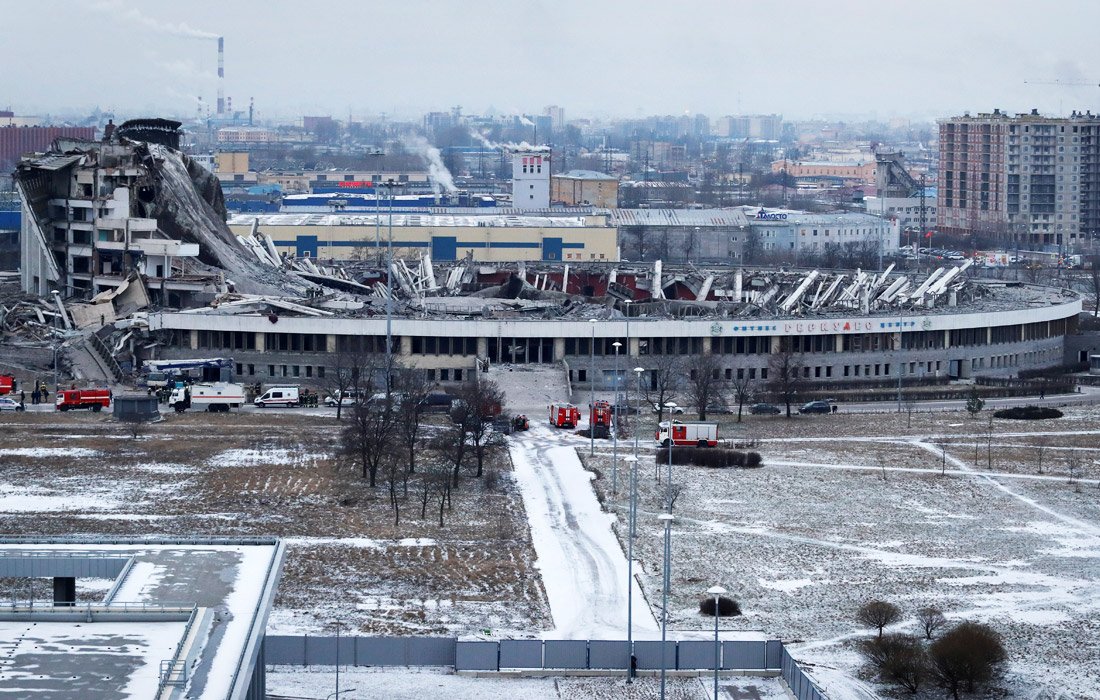 Резал крышу, на которой стоял: обрушение крыши спорткомплекса в Санкт-Петербурге попало на видео