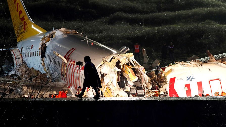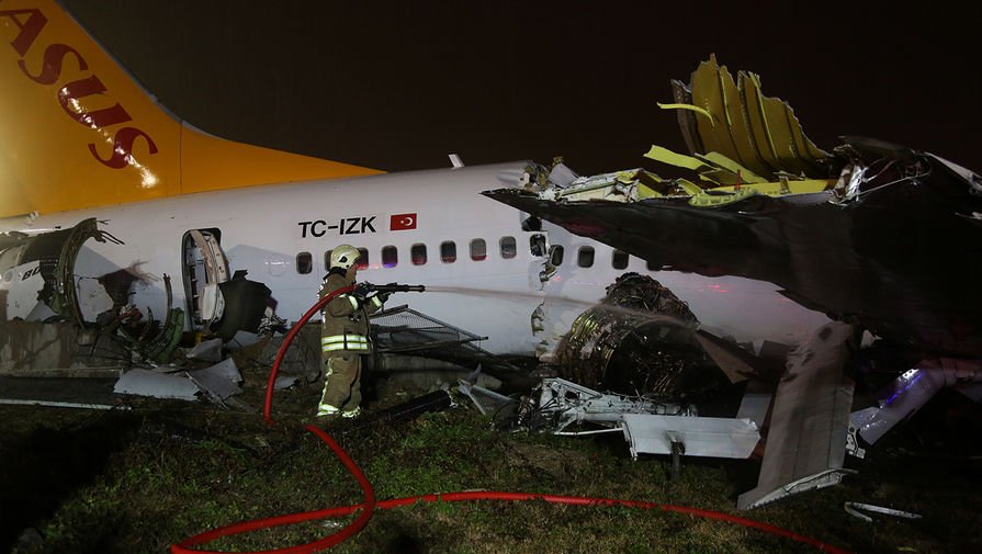 Напомним, что накануне авиалайнер компании Pegasus, летевший из Измира в Стамбул, во время посадки выехал за пределы взлетно-посадочной полосы и развалился на три части.