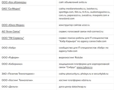 Издание опубликовало список компаний, в адрес которых в августе прошло года Центр технических мероприятий ФСБ направило письма, и сайтов, переписка пользователей которых заинтересовала спецслужбы.