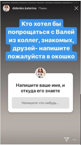 По задумке Екатерины, желающий посетить траурное мероприятие может написать ей сообщение в Instagram, указав свое имя, а также обоснование знакомства с ее мужем. После этого предполагается, что Диденко отправит приглашение на церемонию.
