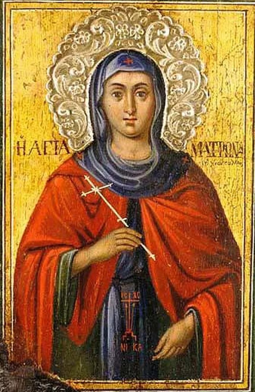 Матрона Солунская, память которой отмечается в этот день, жила в Салониках в 3-4 веках и была рабыней иудейки Павтилы. Хозяйка принуждала ее к отступничеству от христианства, но Матрона не желала отказываться от веры и тайно от госпожи ходила в церковь. Когда однажды Павтила узнала об этом, она приказала бить Матрону палками, а после этого оставила умирать в одной из каморок в доме. Тело святой мученицы по распоряжению хозяйки сбросили с городской стены.