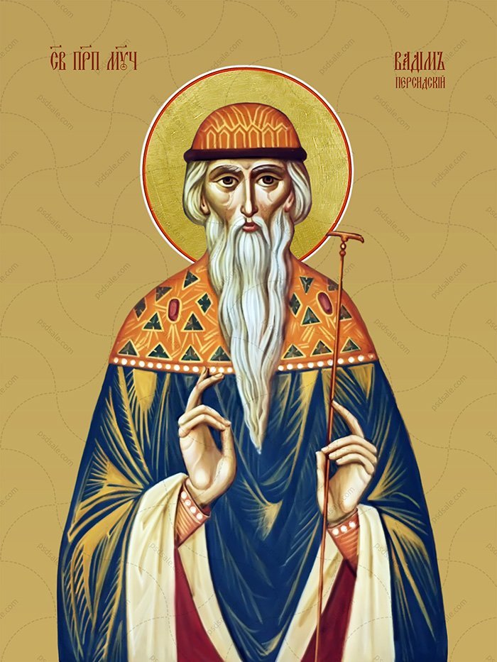 Святой Вадим жил в IV столетии. Он был родом из города Вифлапаты в Персии, из богатой и высокородной семьи. Еще в молодости Вадим познал христианское учение, раздал часть своего наследства. На оставшиеся деньги построил монастырь в пустыне, в котором и поселился. В скором времени к нему присоединились семь человек и стали его учениками.