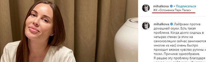 Внимательные фолловеры припомнили, что еще совсем недавно Михалкова выкладывала пост из ЖК «Остоженка Парк».