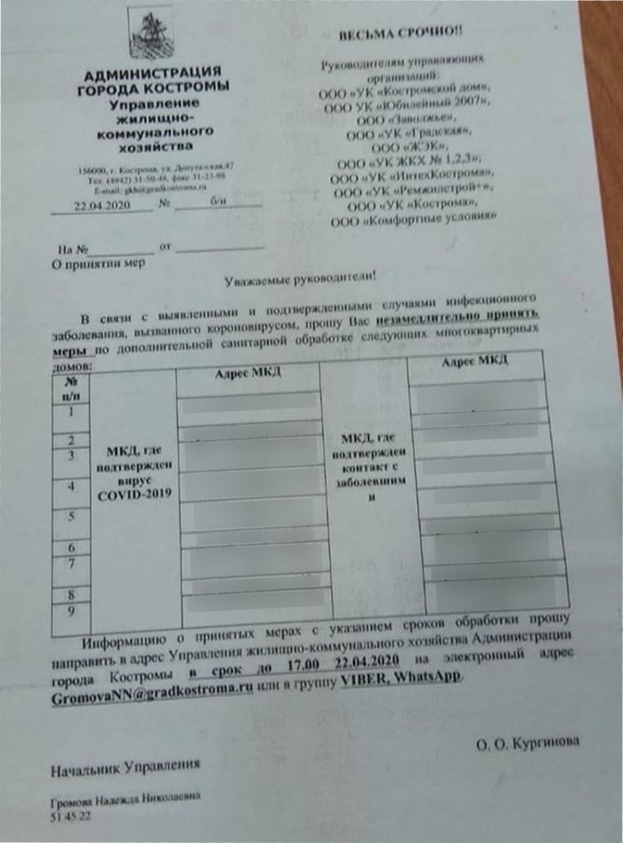 В Костроме на днях в местных пабликах опубликовали фотографию документа, на котором содержатся адреса пациентов с коронавирусом, а также адреса контактировавших с ними людей.