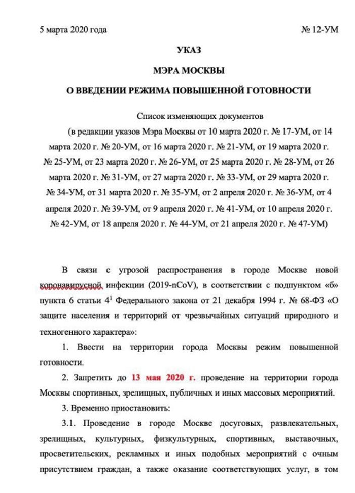 В Москве продлили режим самоизоляции до 13 мая. Ранее ограничительные меры были введены из-за распространения коронавируса в столице. С 28 марта в Москве были вынуждены закрыться большинство предприятий, магазинов и сервисов.
