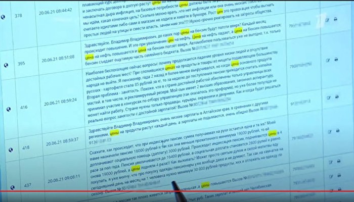 В кадр, как сообщает «Двач», попала таблица, которую операторы вывели на табло. В ней видны вопросы и номер телефона с которого поступил вопрос.