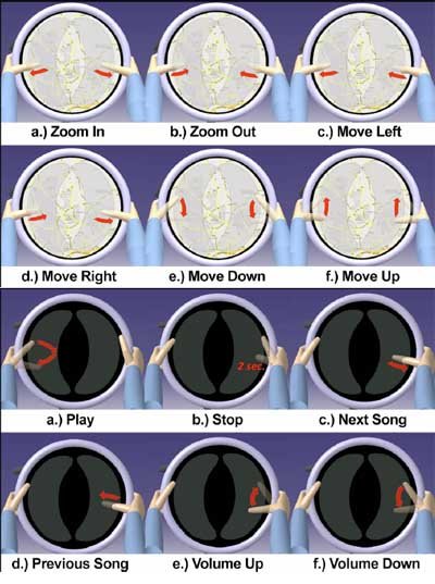 Предварительно одну половину добровольцев попросили назвать основные движения, которые они выполняют, работая со своими портативными устройствами. Из общего списка были выбраны 20 наиболее часто используемых жестов (например, рисование в воздухе первой буквы нужной команды).