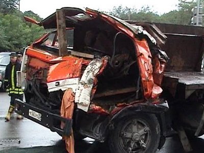 Во Владивостоке утром 7 сентября в районе перекрестка улиц Луговая и Светланская произошло крупное ДТП. Водитель «КамАЗа» с прицепом не справился с управлением, на огромной скорости вылетел с проезжей части и протаранил стену профтехучилища. После этого прицеп грузовика, груженый металлоломом, оторвался и вылетел на дорогу. Водитель "КАМАЗа" погиб на месте.