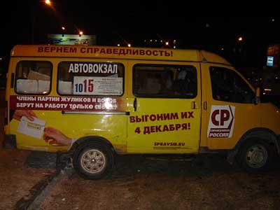 Фотографии маршрутки, обклеенной агитацией «Справедливой России», появились в блоге движения «Солидарность».