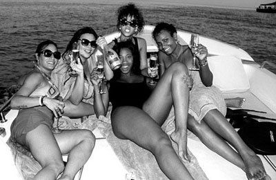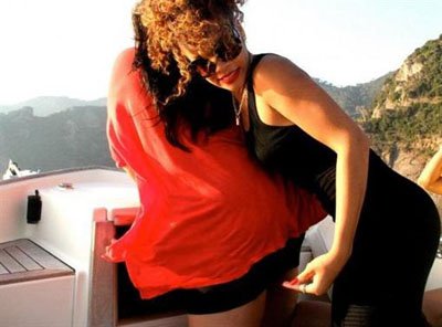 На снимках Рианна позирует на борту яхты в откровенных позах и "заигрывает" с подружками.