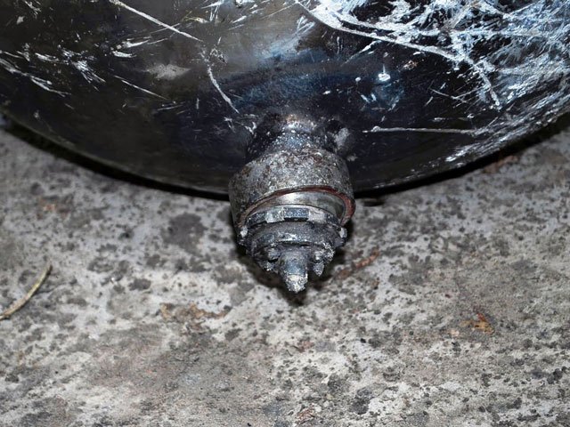 Выполненный из металлического сплава шар имеет одно небольшое отверстие. Внутри он явно полый, и в нем находится некая масса: если шар поднять и потрясти, заметно, что внутри что-то перемещается.