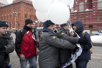 К слову, подобные задержания у стен Кремля отмечаются уже не первый раз. Как пишет в своем ЖЖ Елена Ростова, "подумайте, перед тем, как пройтись по Красной площади с шариками, особенно, если вас больше трех."