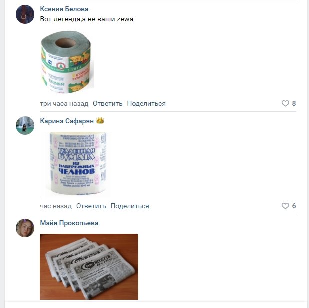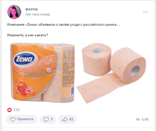 А вот россияне попрощались с туалетной бумагой Zewa. В Сети появились мемы про смываемую втулку, замену мягкой бумаги отечественной «Набережные Челны», передает портал medialeaks.ru.