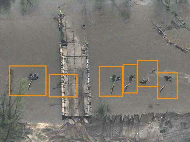 Видео было снято с БПЛА, и они свидетельствуют, что никаких попыток переправить по нему танки или иную боевую технику, не предпринималось.